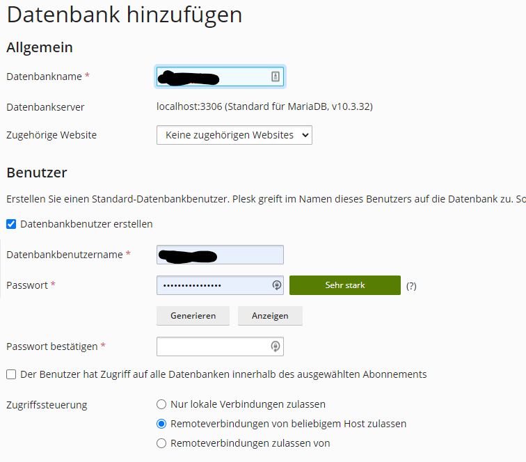 Use the MySQL Database Wizard to create a database and database user with all privileges to the database you’ve created. Take note of the full database name and user credentials for a later step.