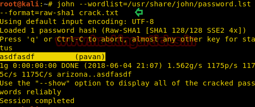 john --wordlist=/usr/share/john/password.lst --format=raw-sha1 crack.txt