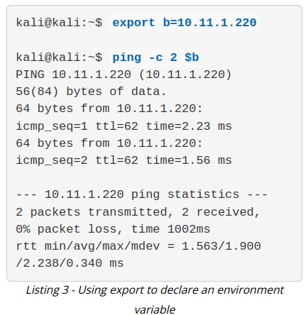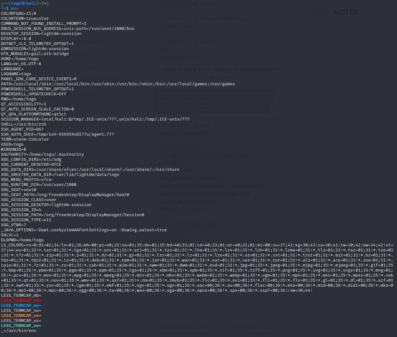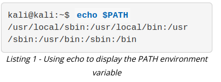 There are many other environment variables defined by default in Kali Linux. We can view these by running env at the command line: