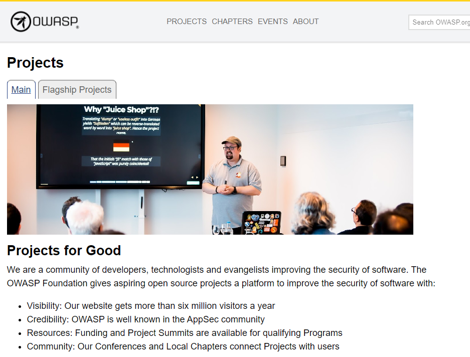 OWASP Projects are a collection of related tasks that have a defined roadmap and team members. Our projects are open source and are built by our community of volunteers - people just like you! OWASP project leaders are responsible for defining the vision, roadmap, and tasks for the project. The project leader also promotes the project and builds the team. OWASP currently has over 100 active projects, and new project applications are submitted every week.